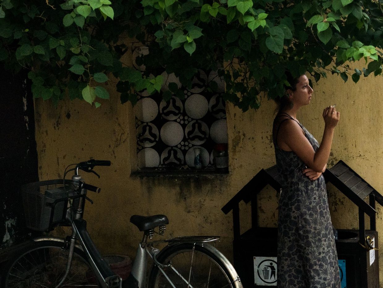 She’s still, but it reads more like a break in routine than a dramatic pause. The bicycle hints at movement, responsibility, everyday errands and finds solitude in it, but also acceptance. Just someone taking a breath inside a life that keeps going.